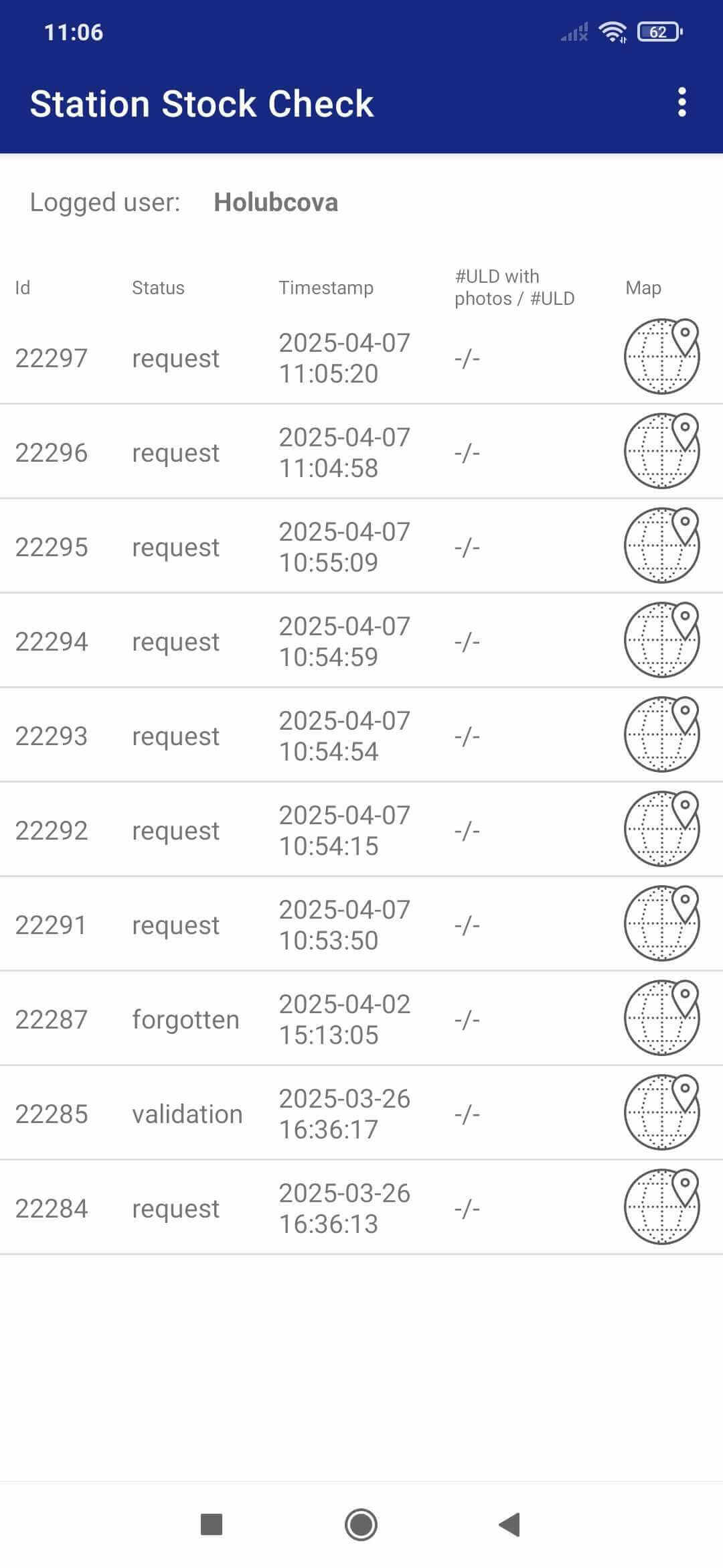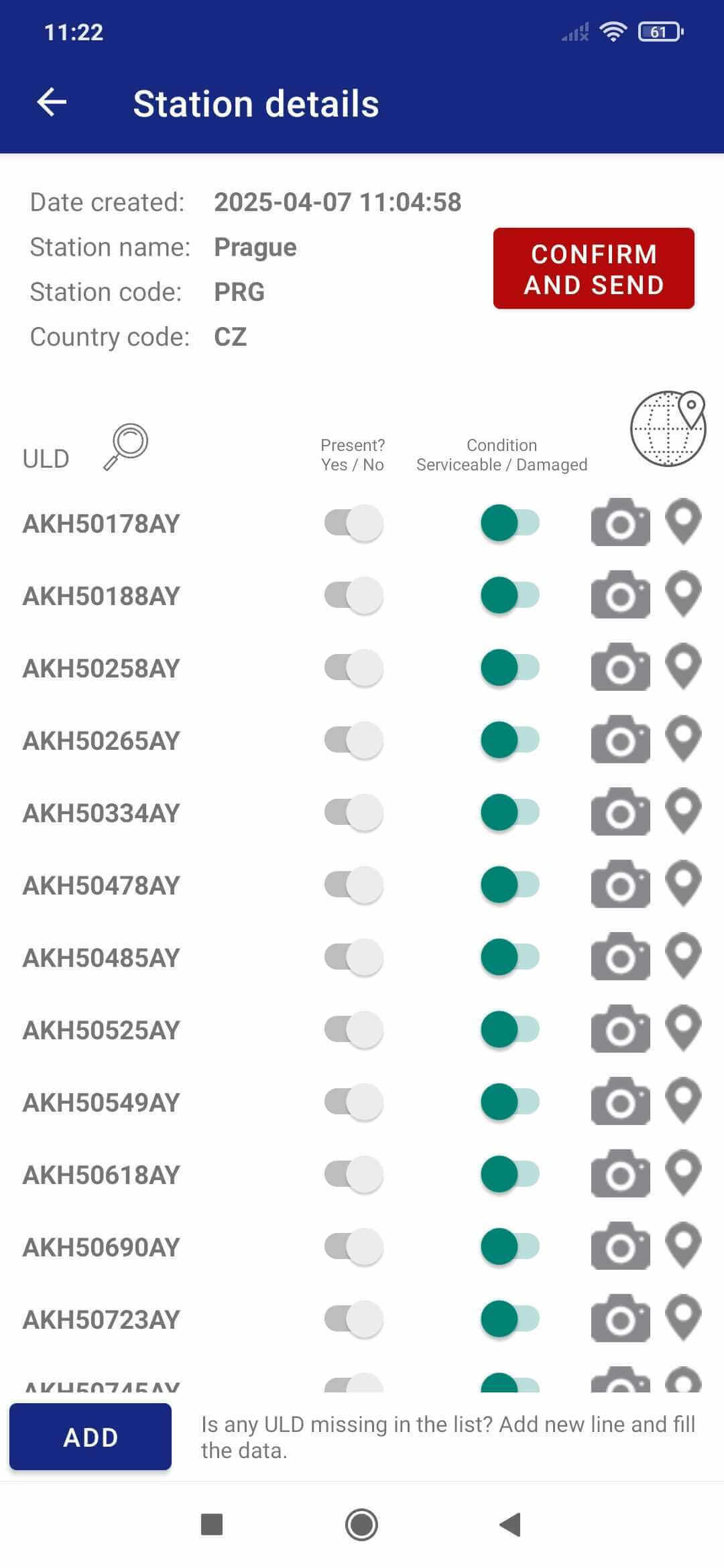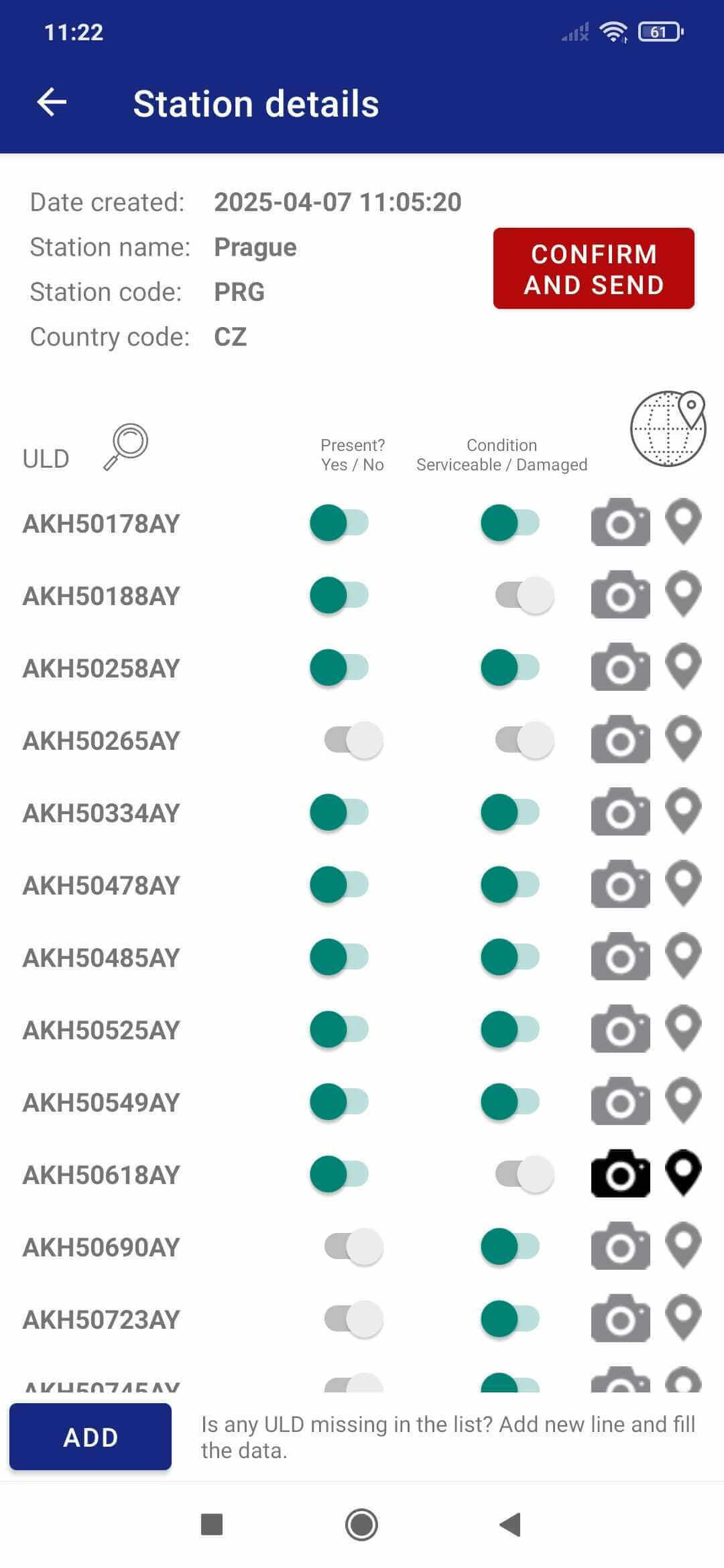 Do the check for all ULDs in the list. Mark the ULD presence and conditions. Take snapshots.